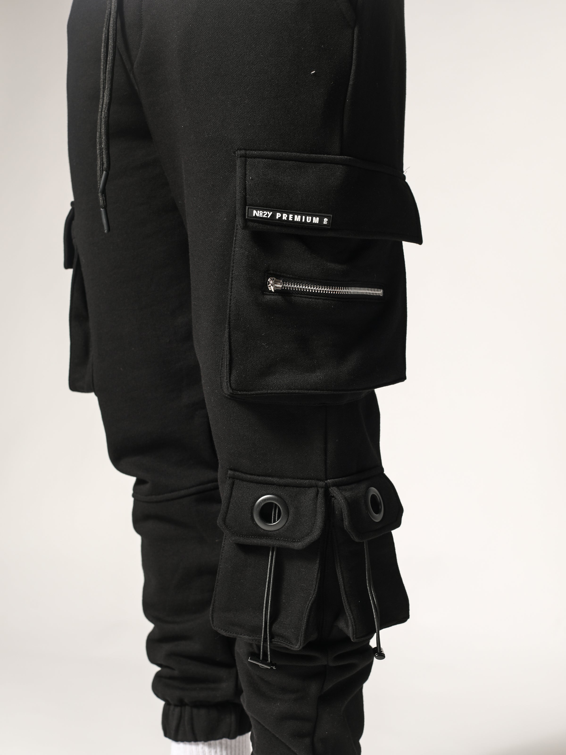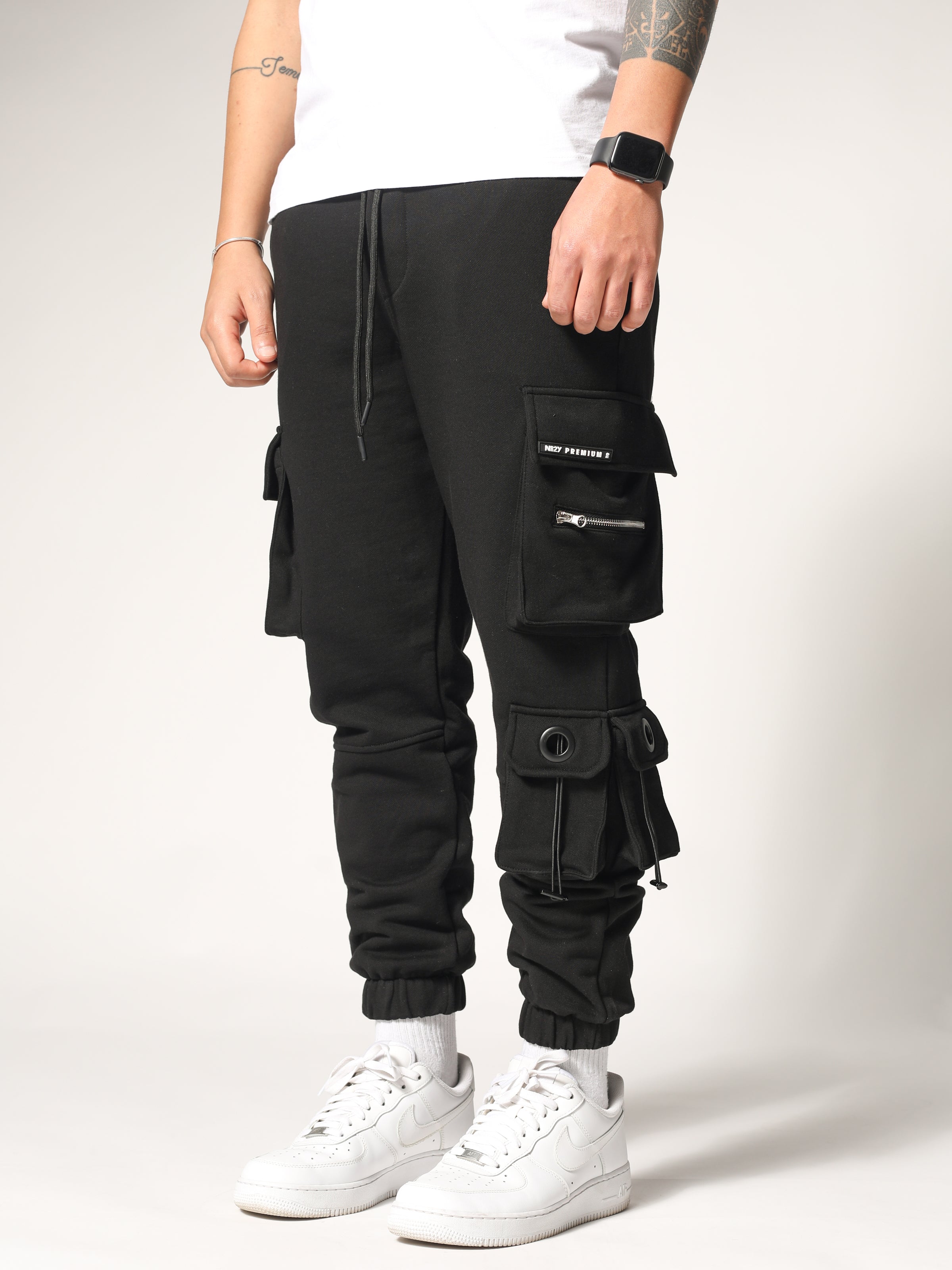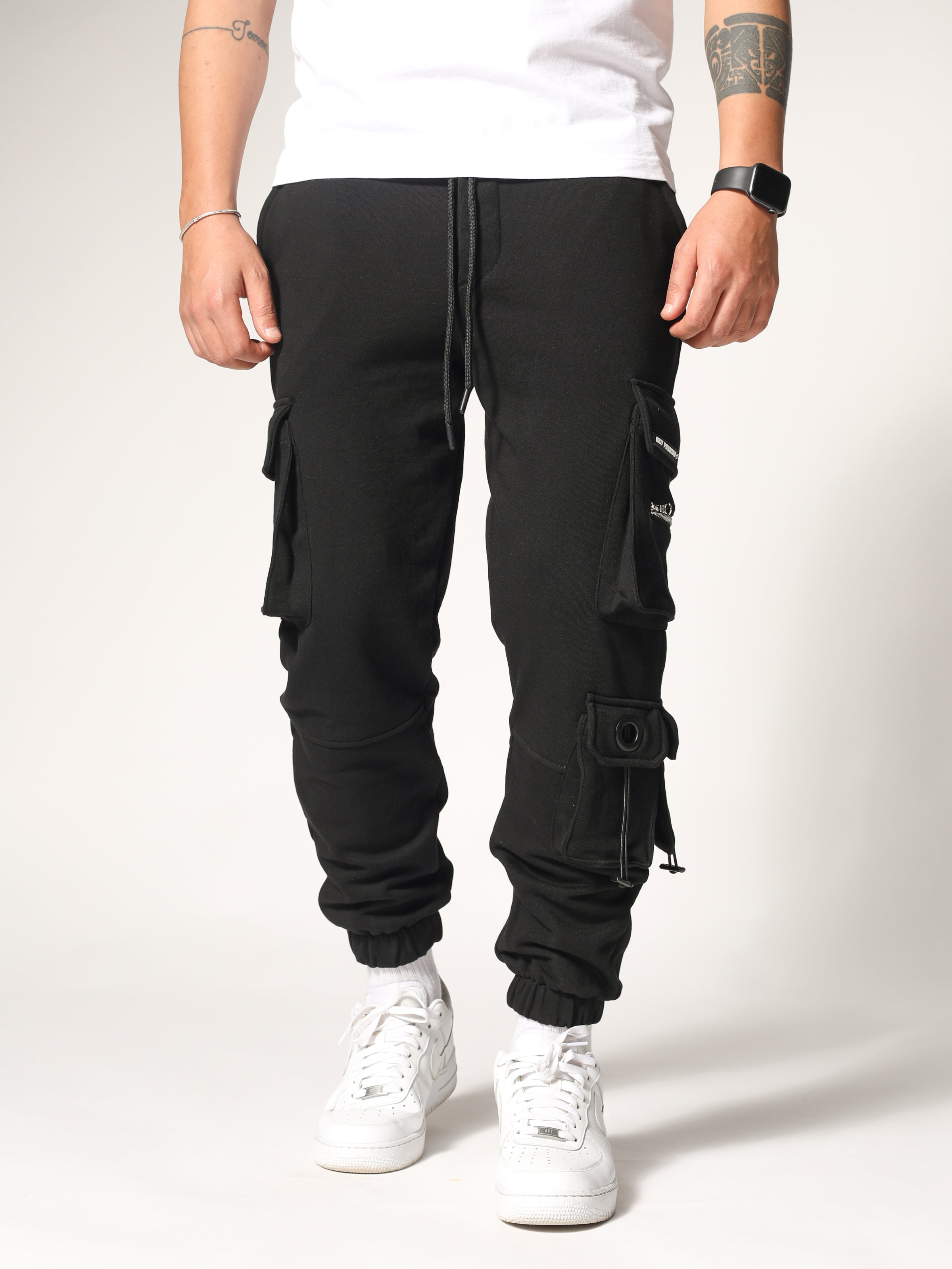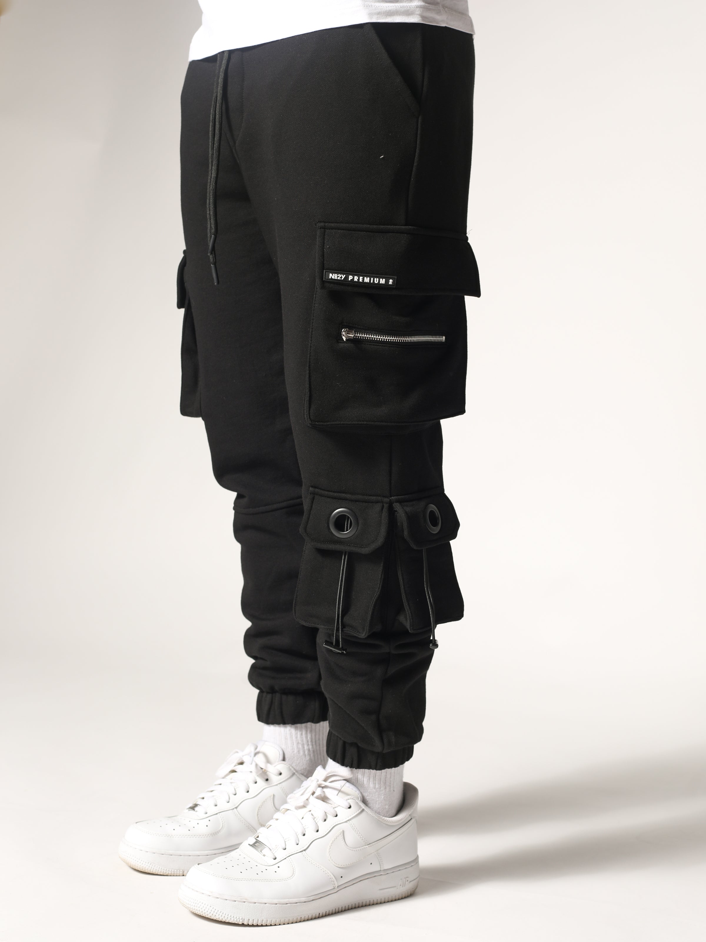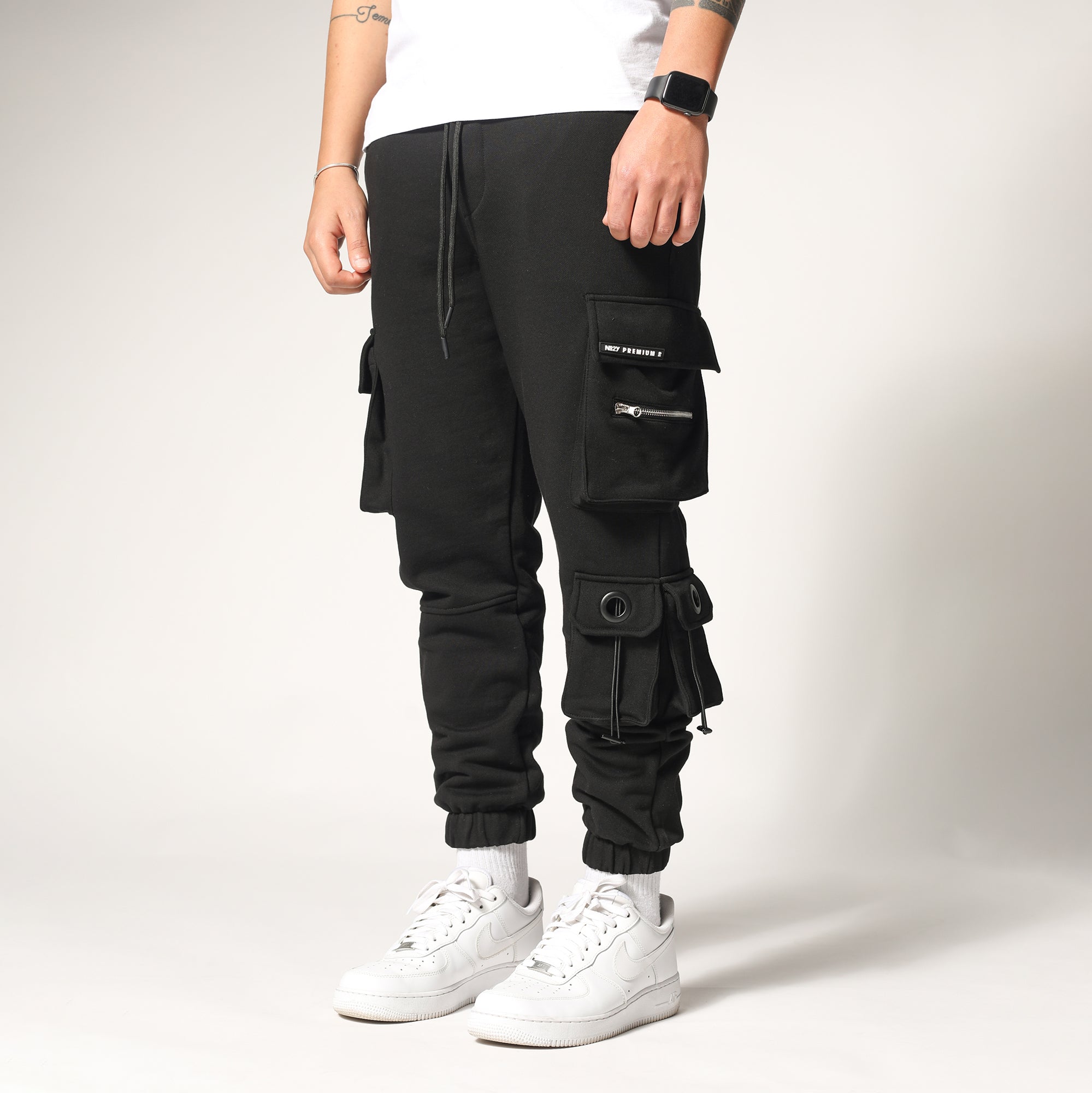 High-Quality Cargo Sweatpants with multiple pockets on sides, made from 100% Cotton Fabric. It is elasticized on wast and ankles. Besides, it has a band on the waist.