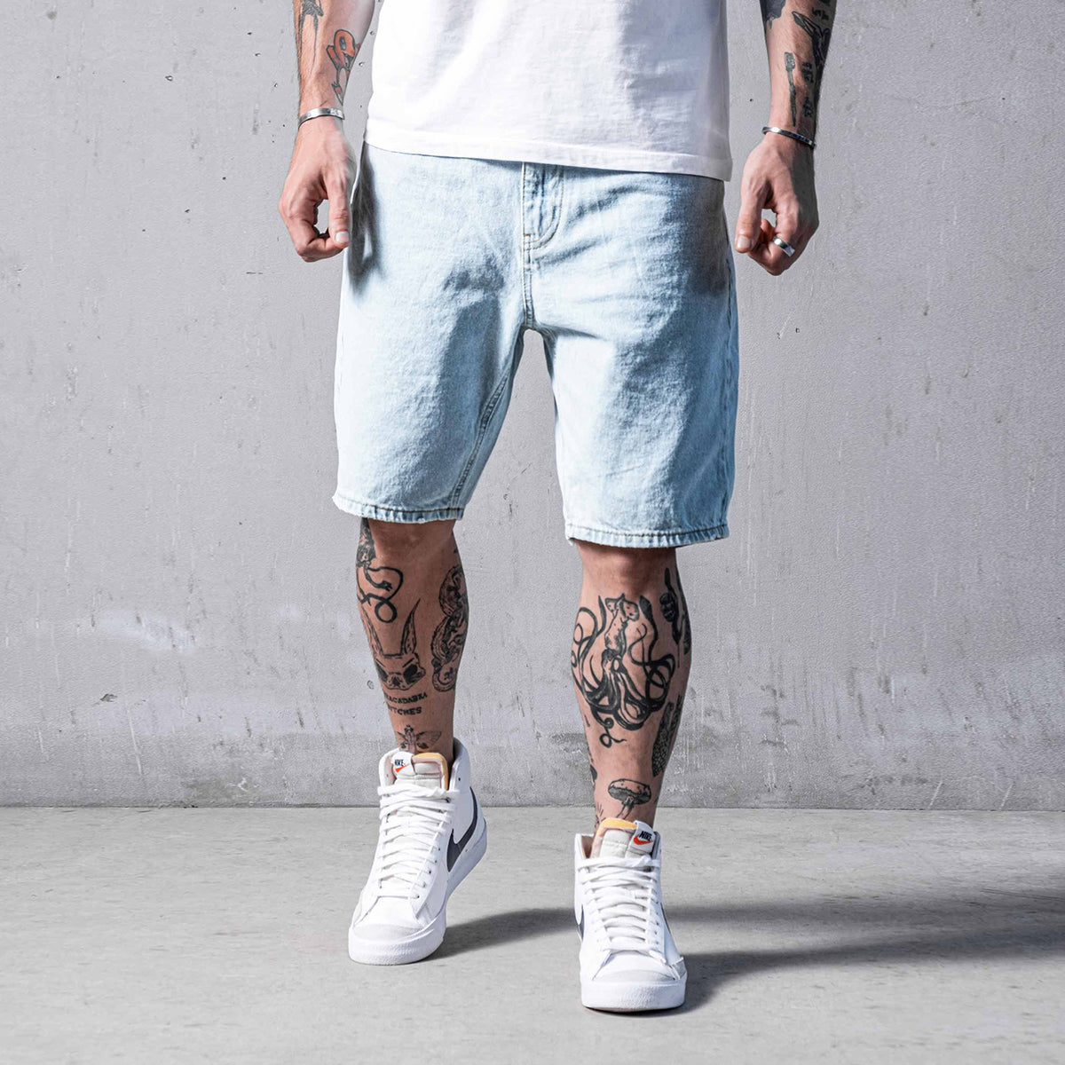 Ice Blue Shorts made from high-quality denim fabric with a light-washed look.It has a 5-pocket design and casual fit.