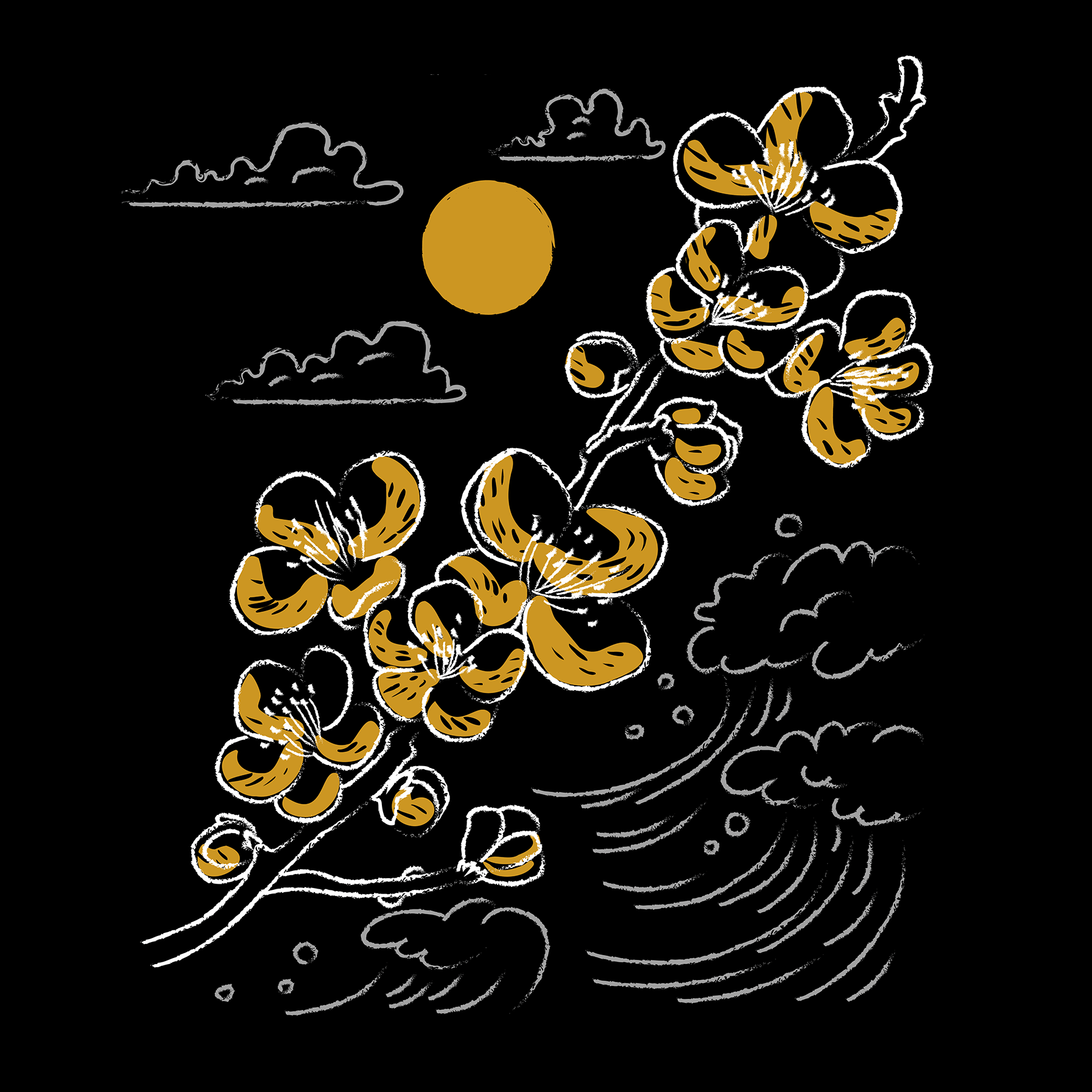 The name Kōka (黄華) means "golden blossom," honoring the radiant plum flowers that shine through the night.