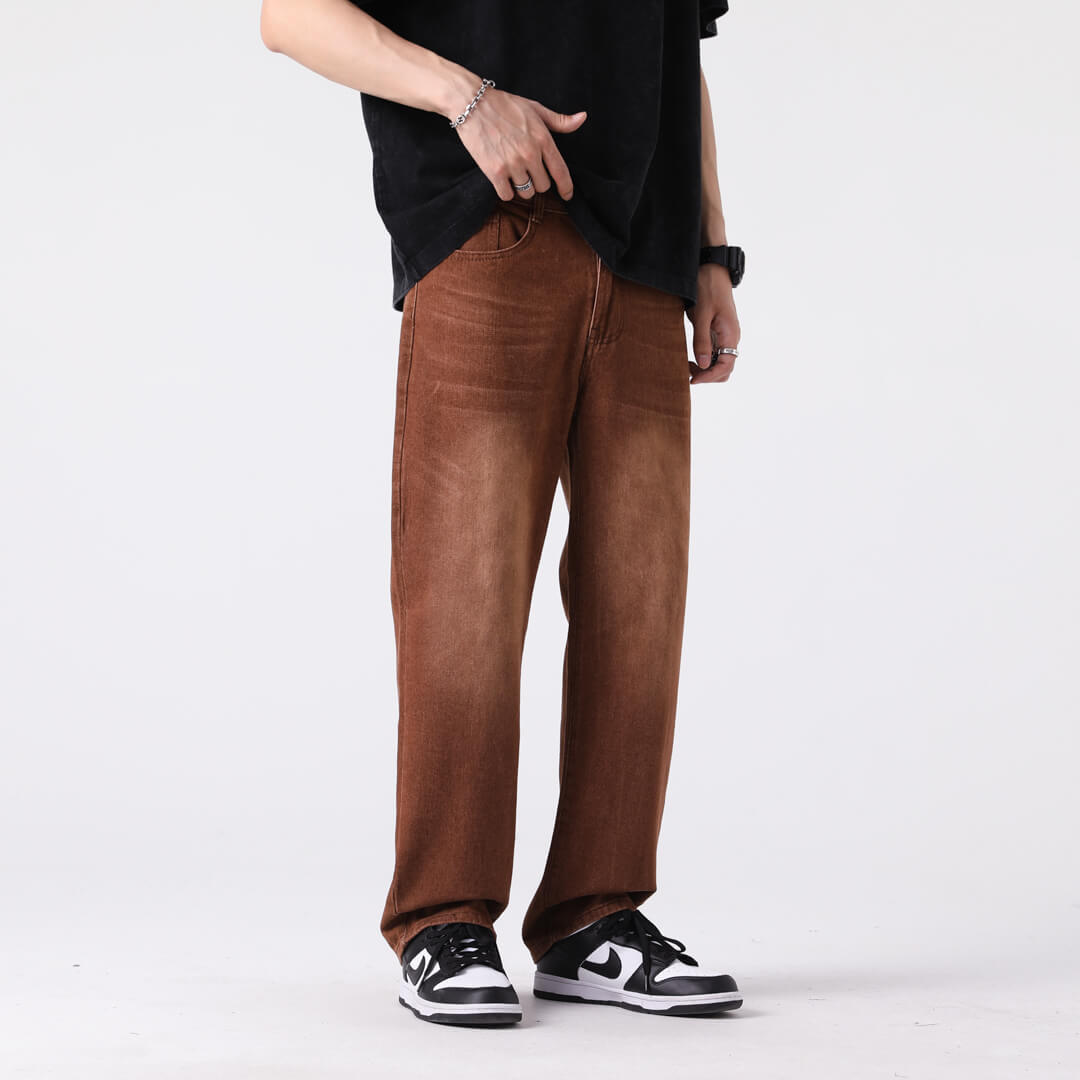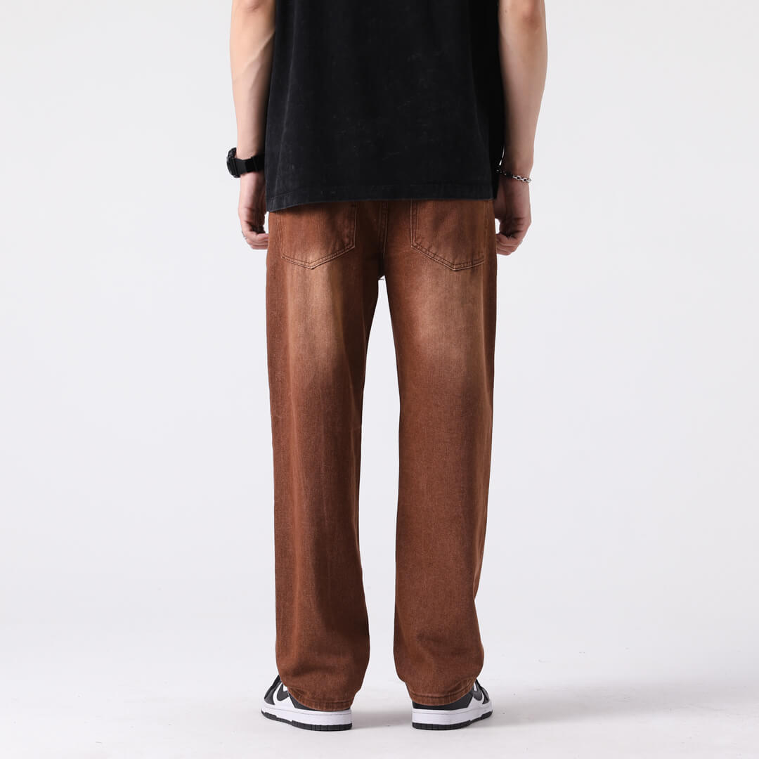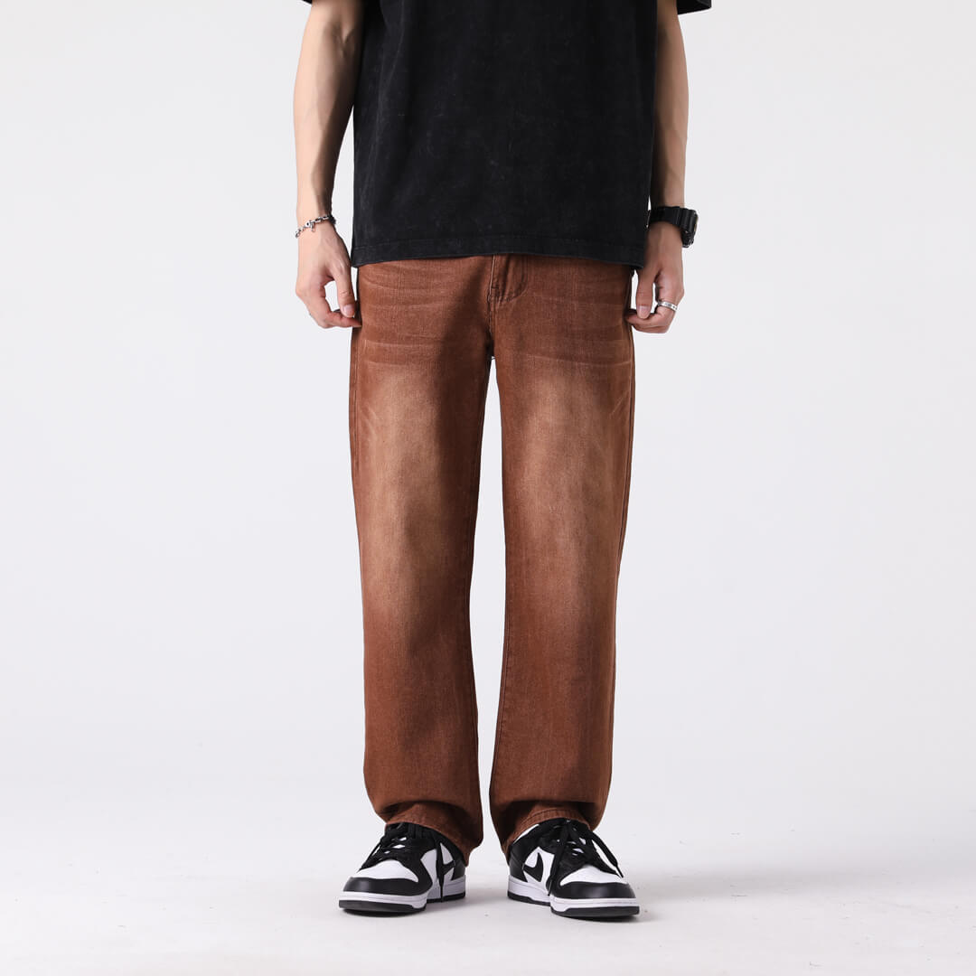 Take your denim 'fit up a notch with Nagare Washed Jeans. Made with washed denim, featuring a straight cut, retro style and unique whiskers pattern on the front. Available in timeless black and brown colors, these jeans will give you a vintage throwback vibe that's perfect for any occasion.