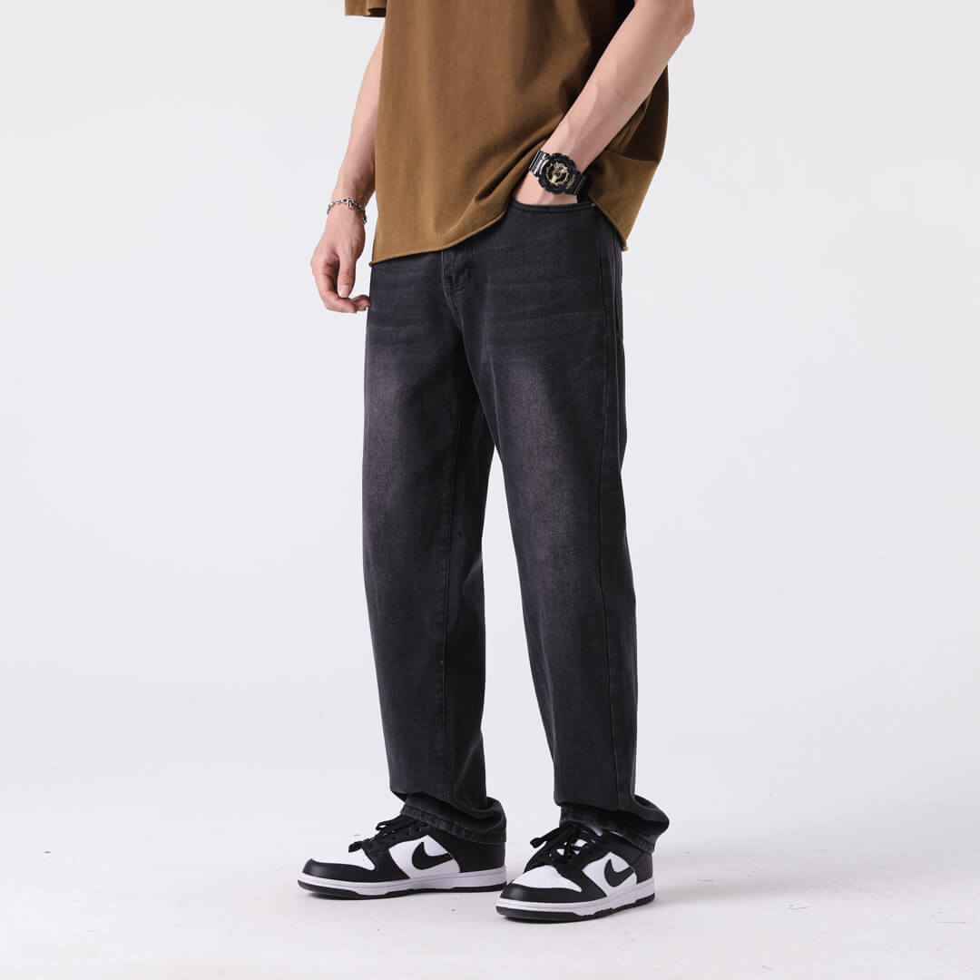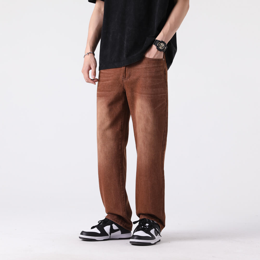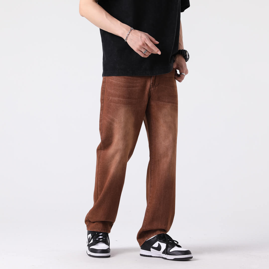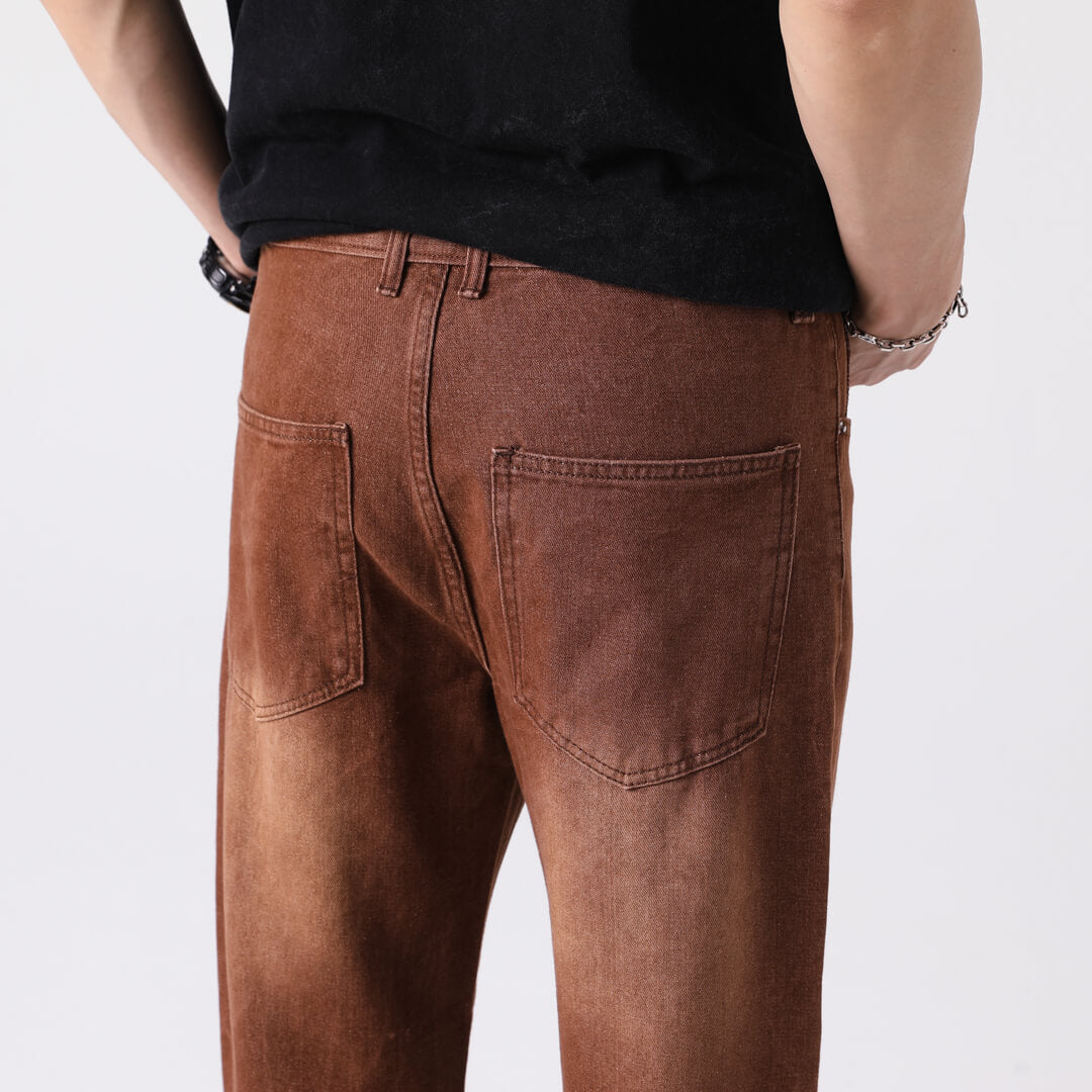 Take your denim 'fit up a notch with Nagare Washed Jeans. Made with washed denim, featuring a straight cut, retro style and unique whiskers pattern on the front. Available in timeless black and brown colors, these jeans will give you a vintage throwback vibe that's perfect for any occasion.