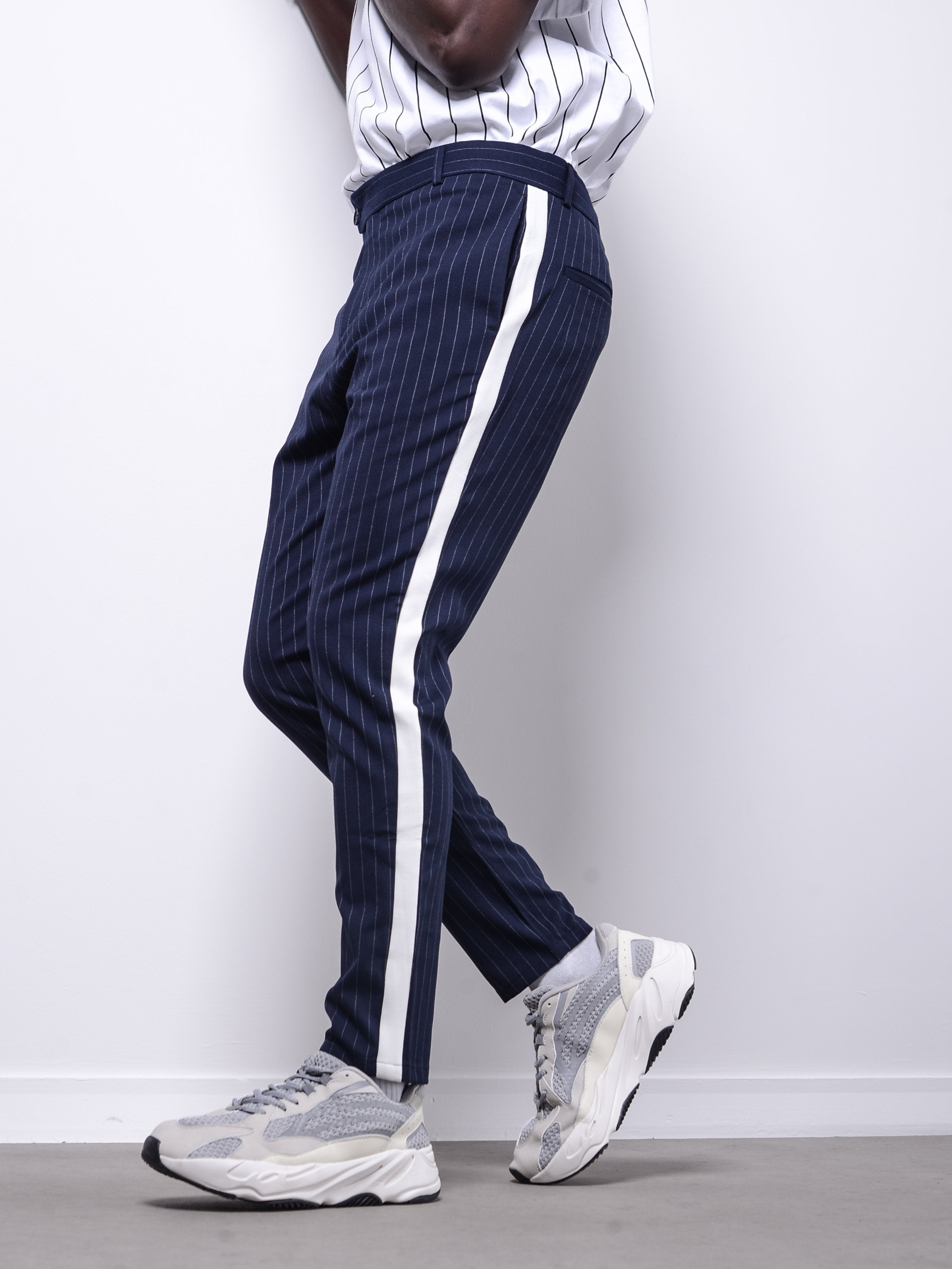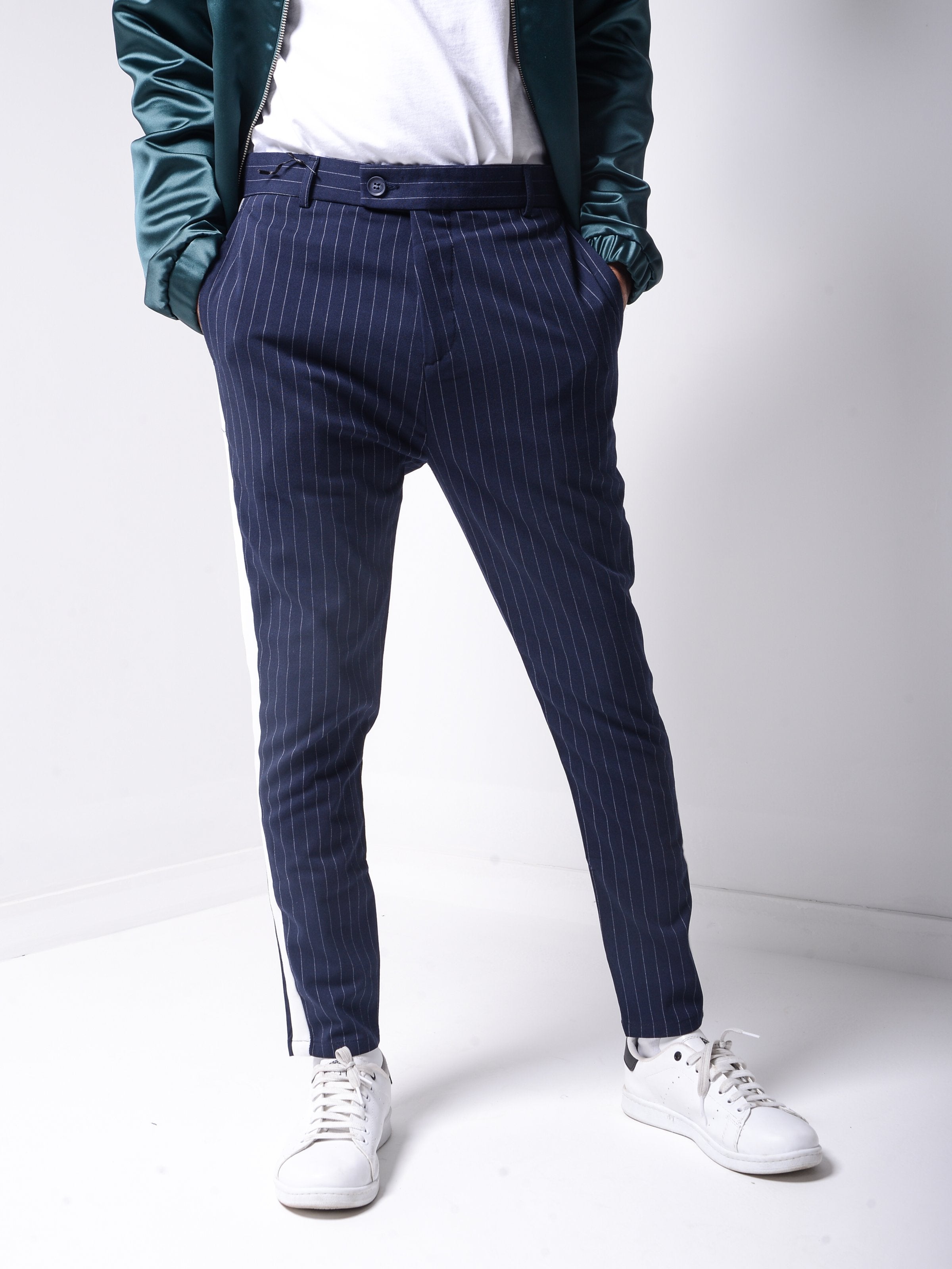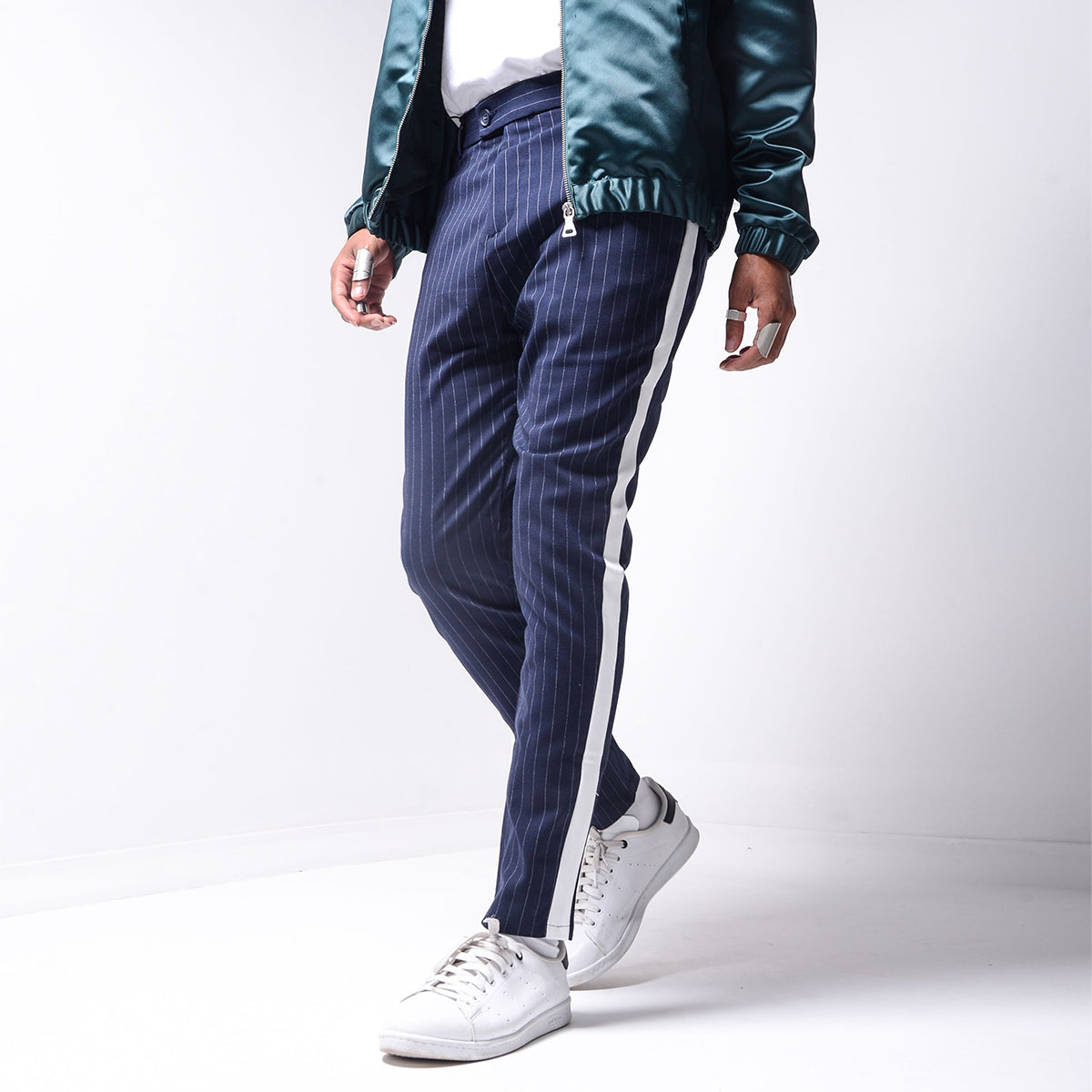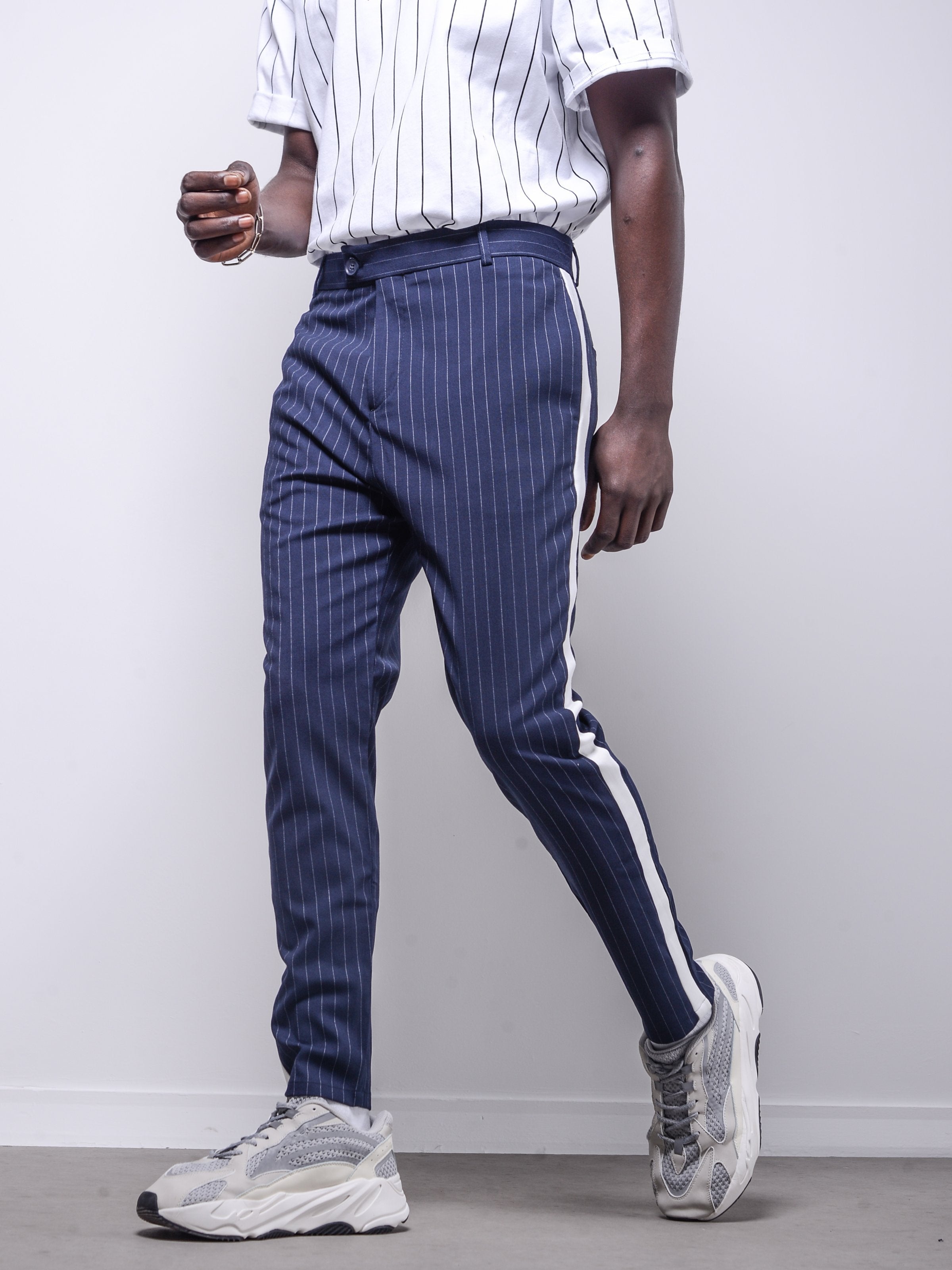 Ankle Pants are made from light spring fabric. It has light stripes and has bolds on sides.
